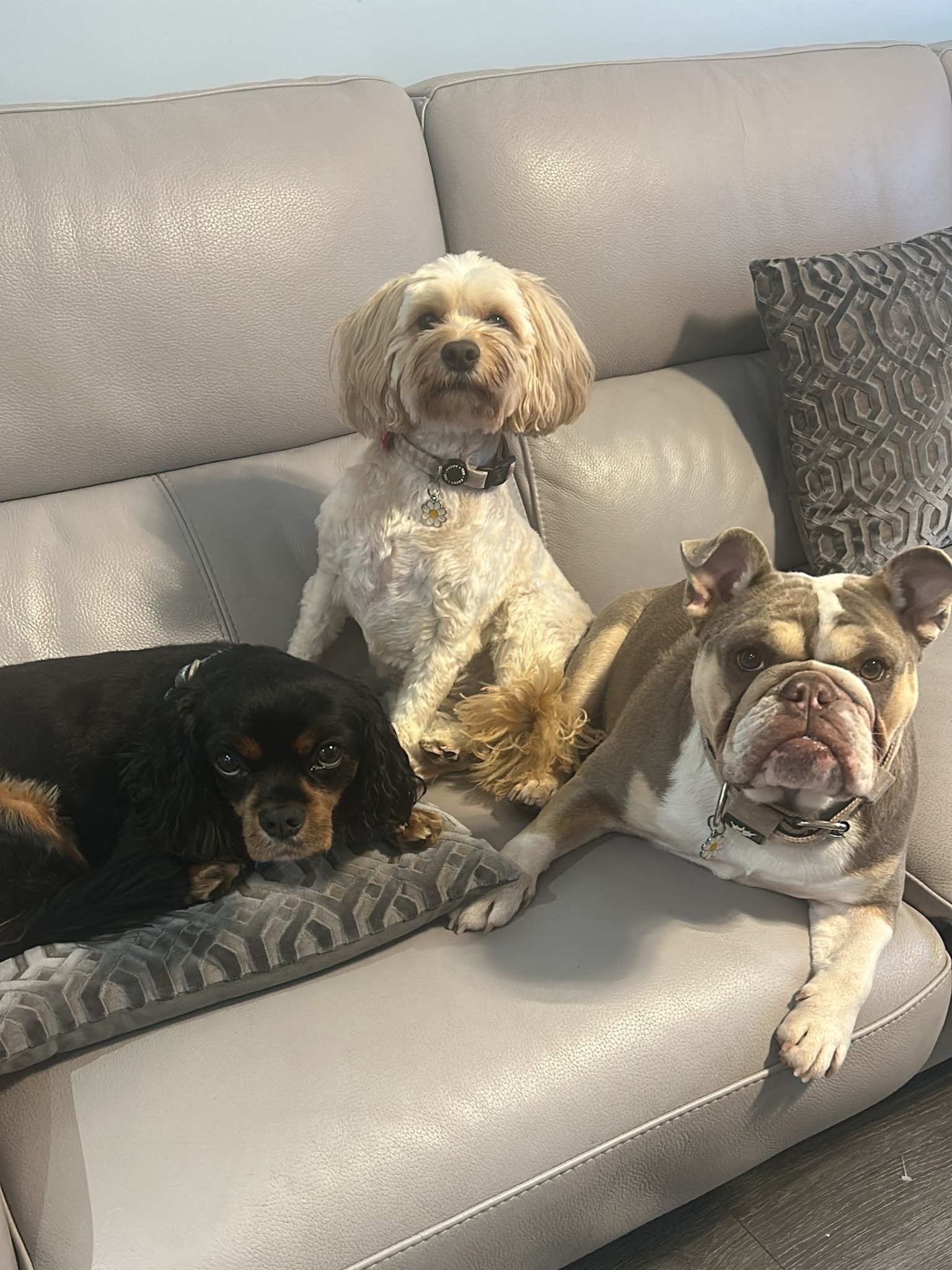 Our family have always had dogs and cats, at present I have a Cockapoo and a Cavalier King Charles and our latest addition is an English bulldog.